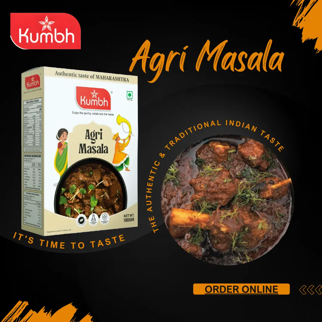 Agri masala is Less spicy in taste and gives the food authentic Flavour.Kumbh Agri Masala is made with right blend of whole spice to make a traditional Maharashtrian spice powder specially used by Agri-Koli Community.