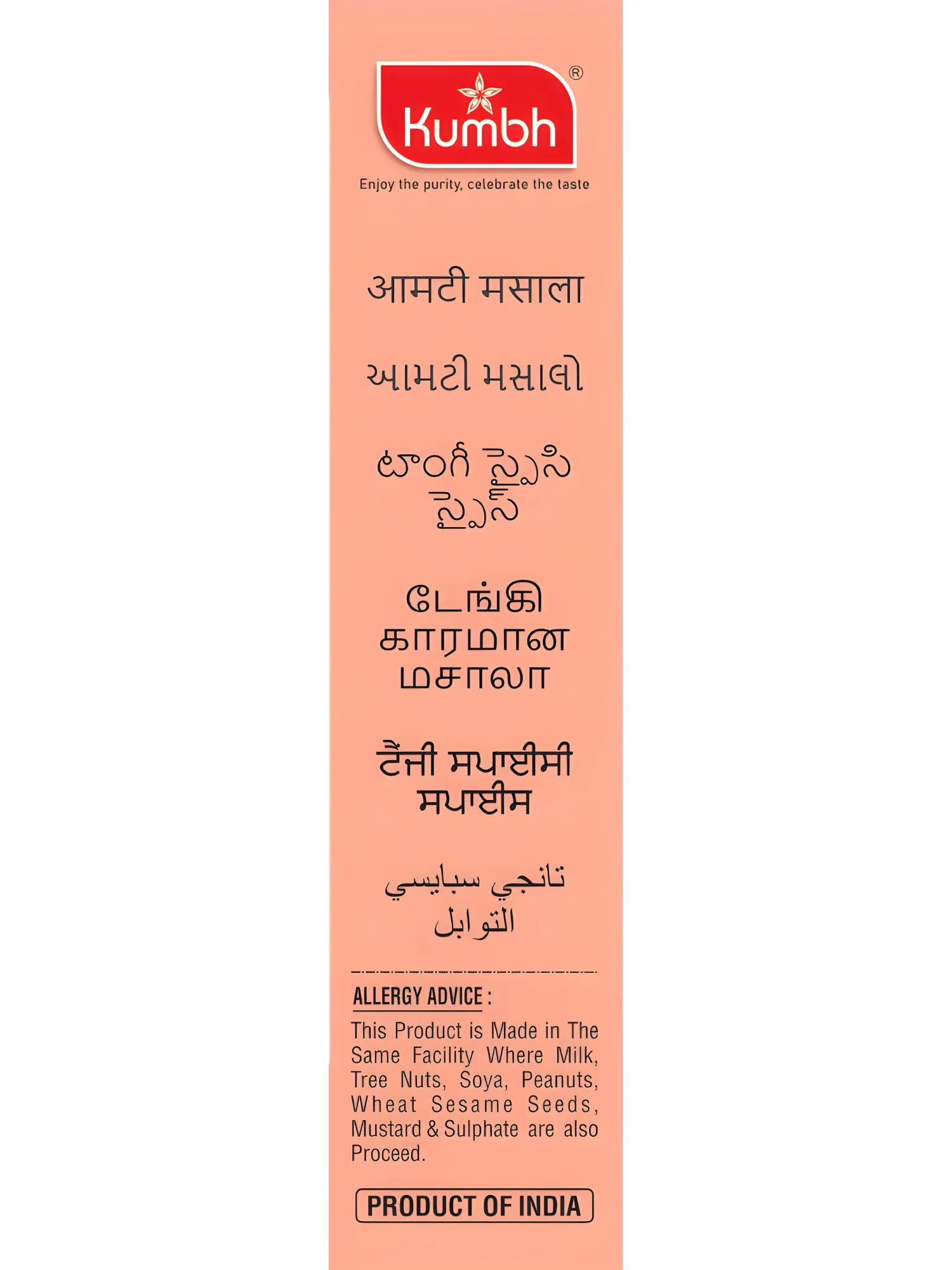 Introducing our authentic Kumbh Amti Masala, the secret to capturing the true essence of traditional flavors! Made with a meticulously crafted blend of hand-picked spices, our Amti Masala brings the taste of Maharashtra right to your kitchen.Indulge in the rich and aromatic spices that perfectly balance the sweetness of jaggery, the tanginess of amchur, and the fiery kick of traditional spice ingredients. Each spoonful of our Kumbh Amti Masala delivers a burst of chatpata flavors that will leave your taste buds craving for more.