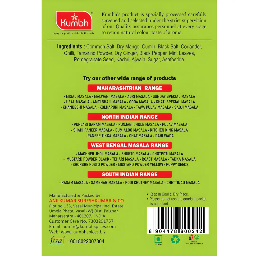 Chaat masala comprises of selected salts and spices along with powdered fruits especially powdered dried mango. Chaat masala is used extensively in cooked as well as non-cooked preparations like salads, snacks, and fast foods. It is a very common yet very revered masala of Indian cuisines. Kumbh Masala manufacturing the best quality of chaat masala. Also, the specially acquired quality raw material gives a mesmerizing taste and flavor to any preparation. Chaat masala is an essential part of any kitchen.