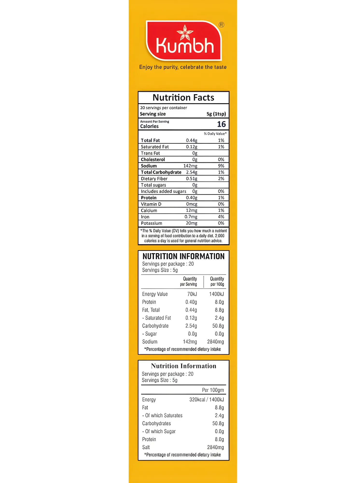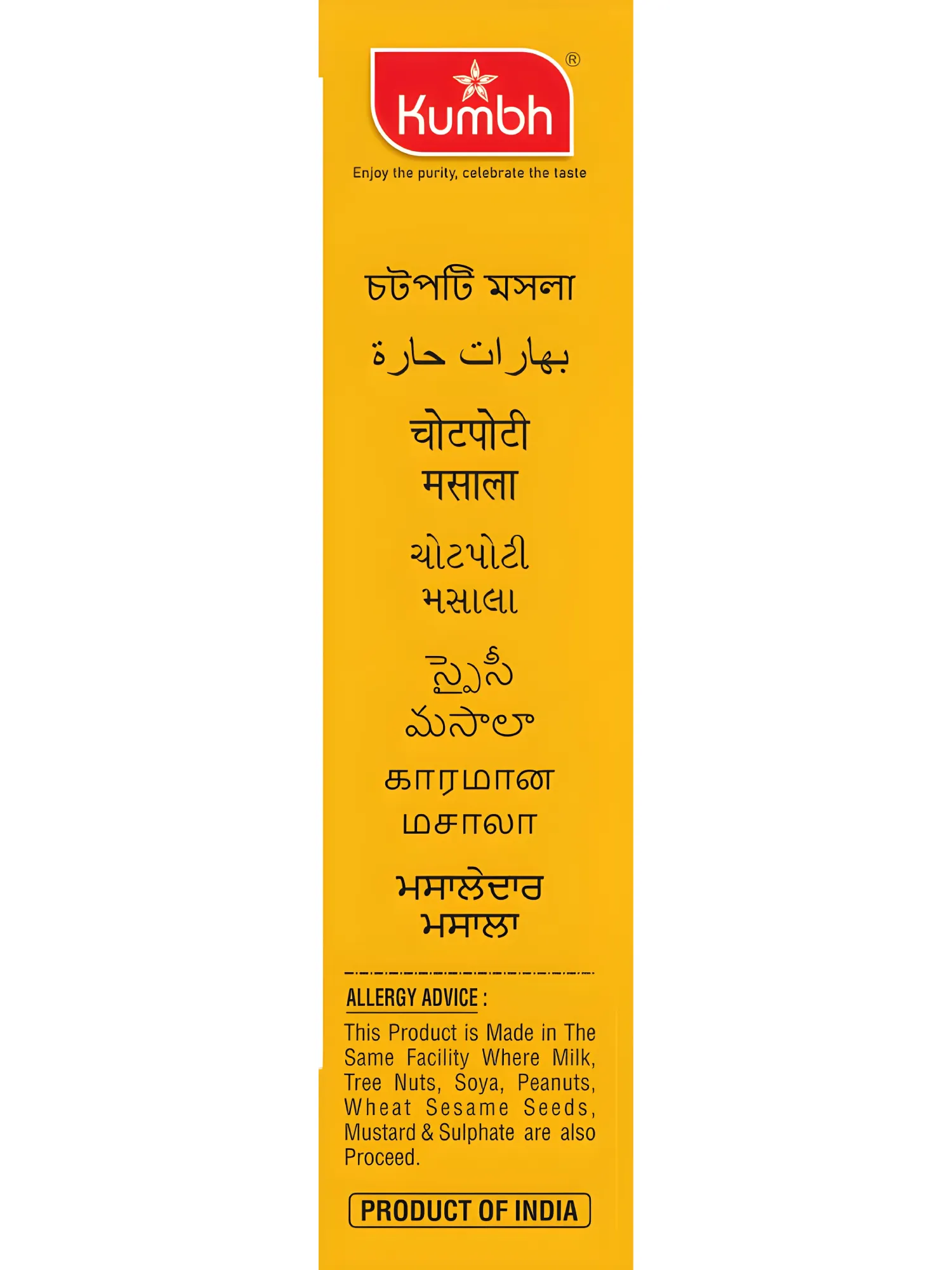 Kumbh Chotpoti Masala is a blend of different spices that makes the preparation easy, flavored, and tasty. Kumbh Chotpoti Masala is fresh and healthy. We bring to you the finest and old-fashioned mix which will add warmth, sweetness, aroma, and a touch of heat from the black pepper & Salt to your meals.