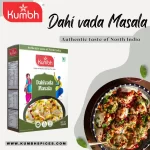 Kumbh Dahiwada Masala is a blend of spices used to prepare the popular Indian yogurt-based dish called Dahiwada. This spice mix is made with high-quality ingredients, including cumin, coriander, mint, and other spices, and is specifically designed to enhance the flavor of Dahiwada. It adds a tangy, spicy and aromatic taste to the dish, making it a popular side dish or snack option. Dahiwada is a dish made with deep-fried lentil dumplings served with yogurt, while Raita is a condiment made with yogurt, vegetables, and spices, and it is perfect for those who enjoy the flavorful and refreshing taste of Indian yogurt-based dishes.