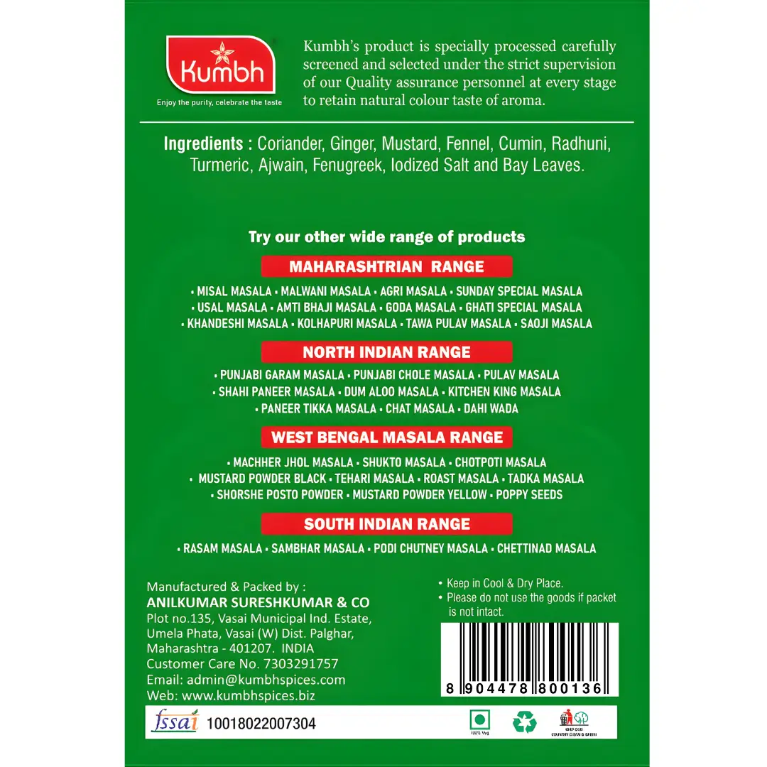 Kumbh’s Shukto Masala is the perfect blend of spices and radhuni that gives the authentic taste of Bengali popular vegetables recipe called shukto recipe.Kumbh’s Shukto Masala are exquisite blend of rich and best quality spices