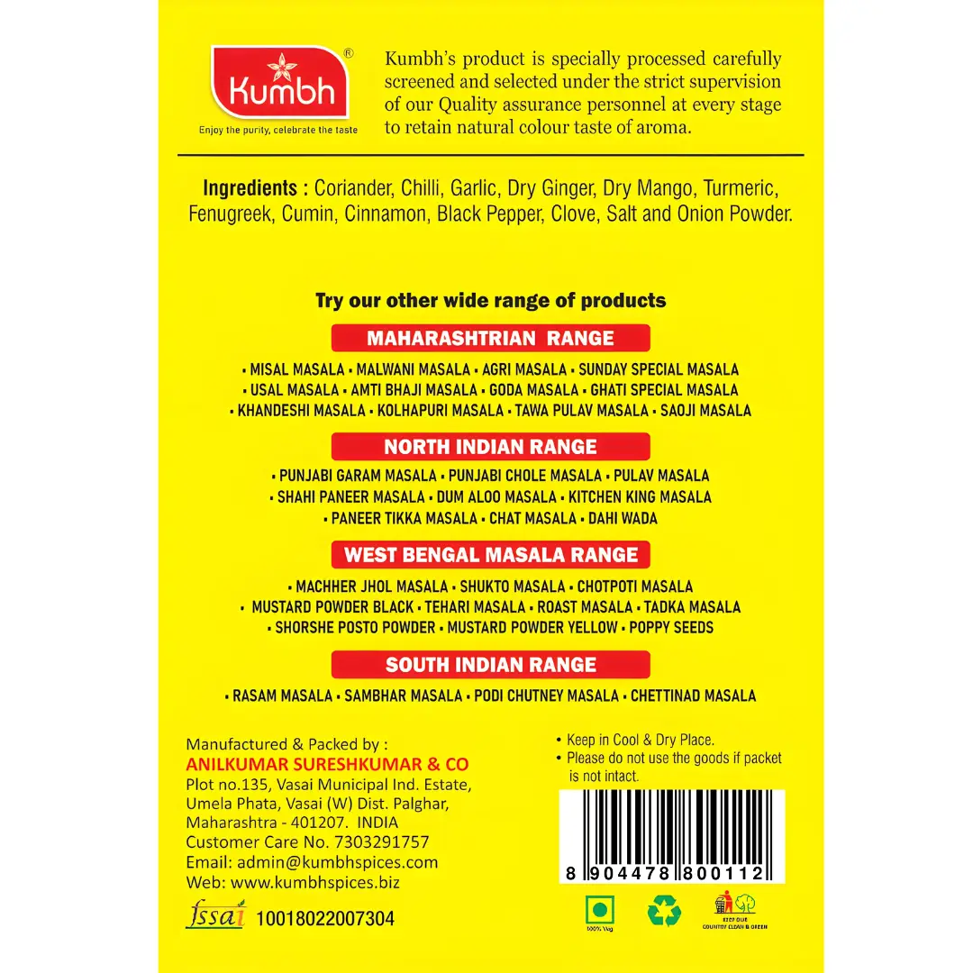 Kumbh’s Tadka Masala is the perfect blend of spices and radhuni that gives the authentic taste of Bengali popular Dal and more recipe called Tadka recipe.Kumbh’s Tadka Masala is a blend of rich and best quality spices that adds an amazing taste, color and flavour to dish and Prepared from freshly grounded premium quality spices
